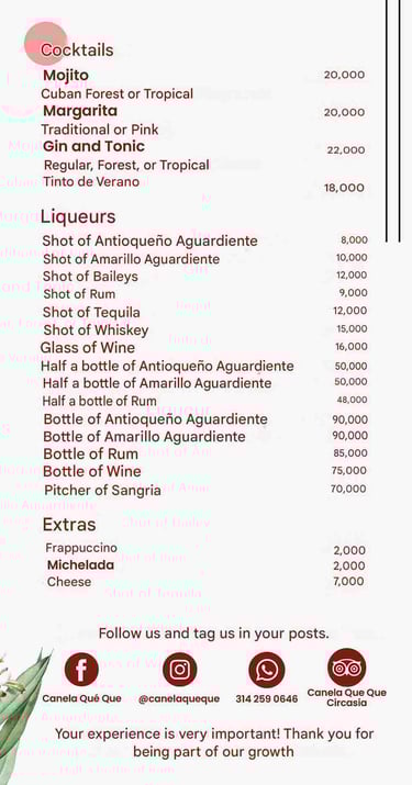 Canela Que Que, your gastronomic oasis in the heart of Circasia, Quindío! We are much more than just a restaurant; We are a space where authentic flavors merge with the warmth of our home.